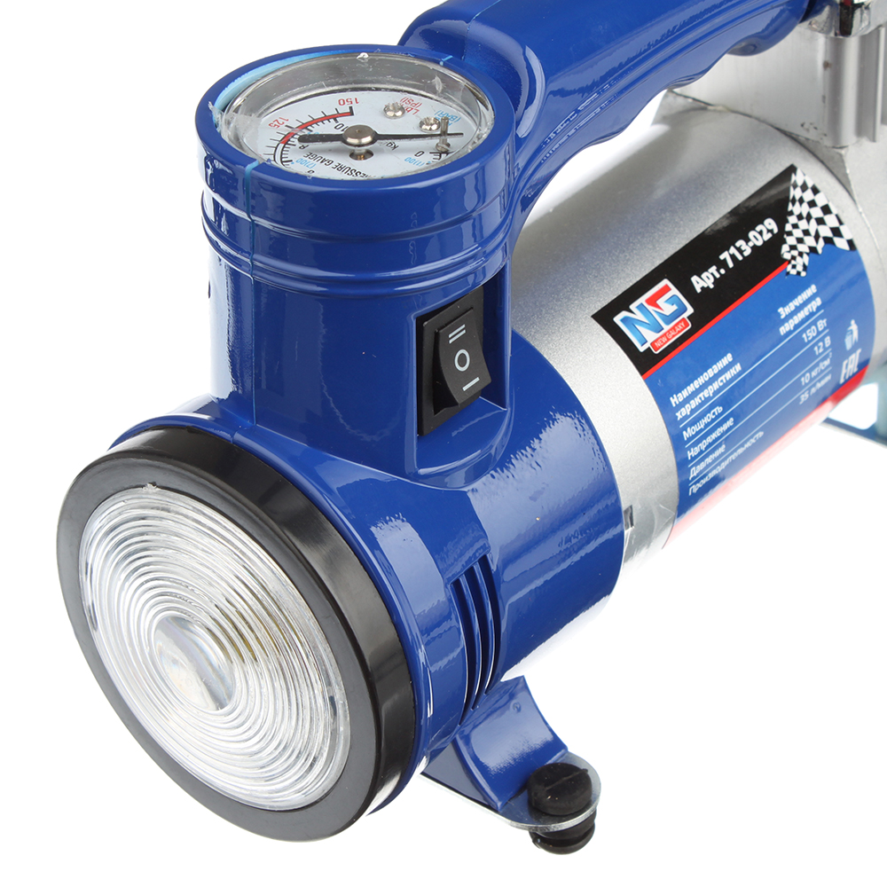 Компрессор 12В, 150Вт, 35л/мин, фонарь, New Galaxy 713-029