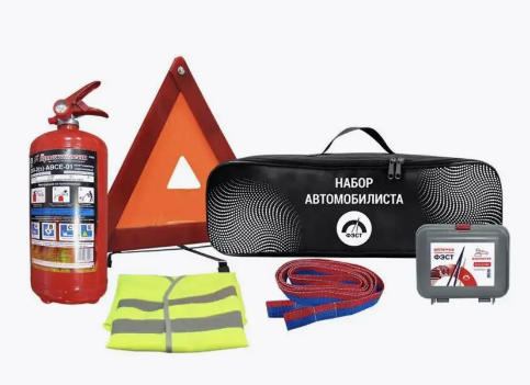 Набор автомобилиста "ФЭСТ" необходим каждому владельцу автотранспорта для гарантийного прохождения техосмотра автомобиля, а также в случаях непредвиденных аварийных ситуациях на дороге. Основной состав набора автомобилиста "ФЭСТ" включает все необходимое для прохождения техосмотра. Все комплектующие, входящие в состав наборов автомобилиста "ФЭСТ", имеют необходимые лицензии и сертификаты. Сумка выполнена из прочного влагопроницаемого материала, устойчивого к износу. Состав: 1. Аптечка первой помощи дорожная "ФЭСТ" (новый состав); 2. Огнетушитель металлический с манометром ОП-2(з), объём 0,015 куб.м.; 3. Знак аварийной остановки; 4. Трос буксировочный с петлями (3,5 т, 4 м); 5. Жилет сигнальный; 6. Сумка-футляр, размеры: 470/135/125 мм (ш/в/г).