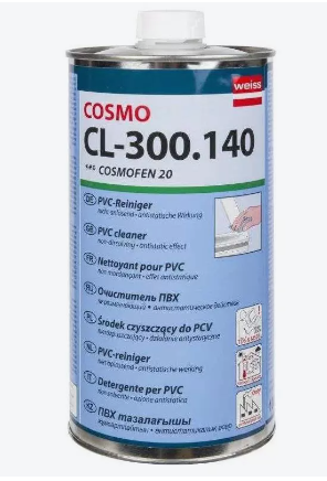 Нерастворяющий очиститель для ПВХ COSMOFEN 20 CL-300.140 обеспечивает очищение поверхностей от пыли, остатков защитной пленки, жирных карандашей, следов резины, незатвердевшей полиуретановой пены и незатвердевших остатков герметиков, а также смолы/битума. Средство предназначено для очистки профилей из жёсткого ПВХ, полиуретана, покрытых плёнкой и плит из жёсткого пенопласта (ПВХ). Наличие антистатика эффективно предотвращает быстрое повторное загрязнение поверхностей профиля. Объем 1000 мл. * Нерастворяющее чистящее средство с антистатиком для очистки профилей из жёсткого ПВХ, полиуретана, покрытых плёнкой и плит из жёсткого пенопласта (ПВХ) * С антистатиком (эффективно предотвращает быстрое повторное загрязнение поверхностей профиля) * Подходит для профилей, покрытых декоративной плёнкой * Не содержит хлорированных углеводородов * Очистка от пыли, остатков защитной пленки, жирных карандашей, следов резины, незатвердевшей полиуретановой пены и незатвердевших остатков герметиков, а также смолы/битума * Благодаря хорошей совместимости со многими пластиковыми поверхностями в сочетании с антистатическим эффектом особенно подходит для изготовления конструкций для выставочных стендов, изготовления рекламных щитов, многих отраслей переработки полимеров * Цвет COSMOFEN 20 CL-300140: прозрачный * t° Использования: от +5°С * t° Хранения: в сухом помещении при +15°C до +25°C * Срок хранения: 24 мес * Объём: 1000 мл