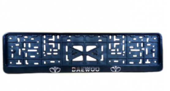 Рамка с защелкой черная под номерной знак с серебрянной надписью "Daewoo".