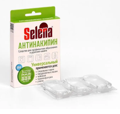 Антинакипин Selena жидкий универсальный концентрат 3 капсулы по 20 мл. Назначение: Для посудомоечных машин, Для утюгов, Для кухонной техники, Для стиральных машин.
