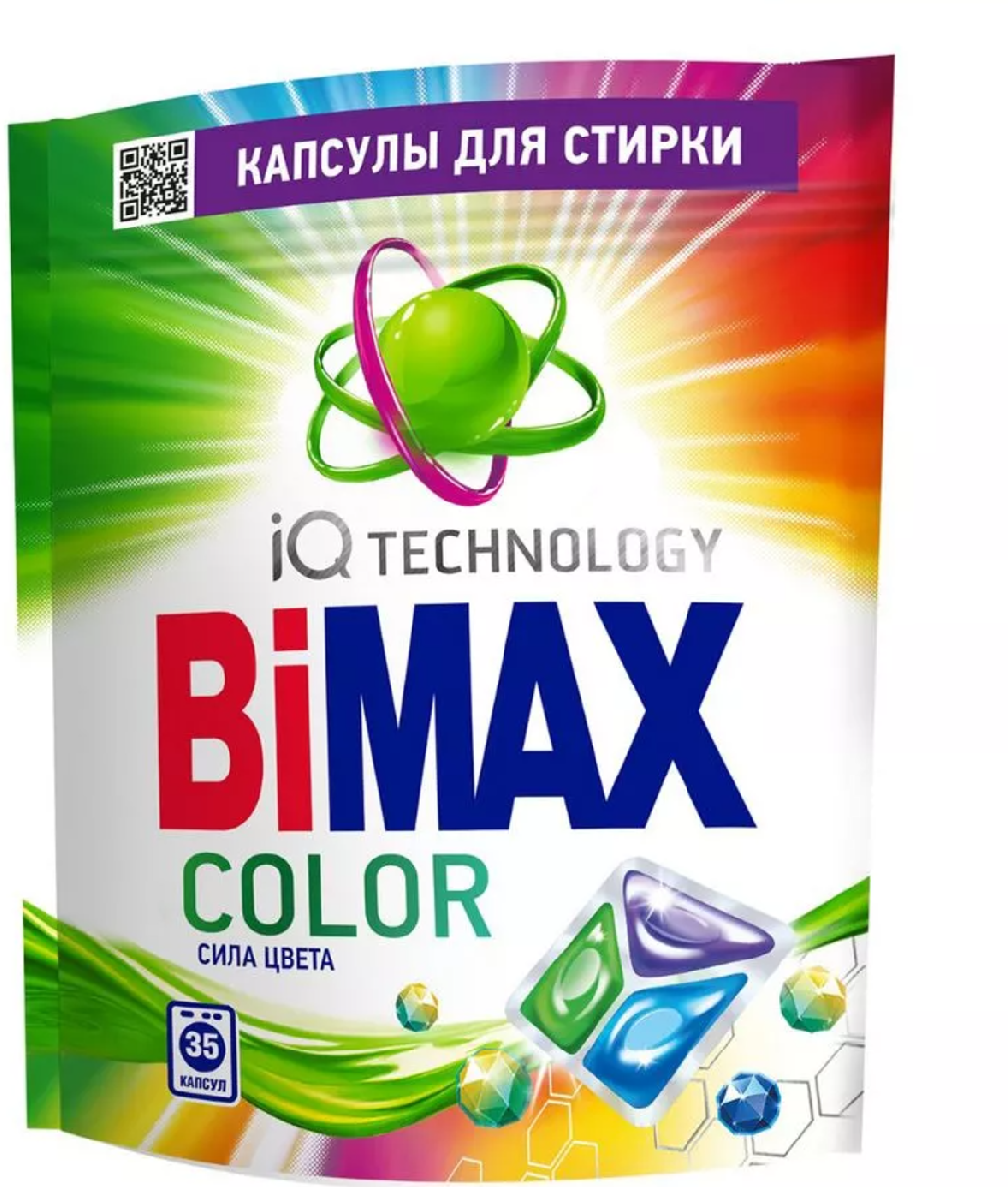 Капсулы для стирки BiMAX Color для цветных вещей это высококонцентрированное жидкое средство с пониженным пенообразованием и биодобавками. Отстирывает более 100 видов пятен, в том числе от шоколада, ягод, кофе, красного вина, косметики, сажи, грязи. Дарит вещам мягкость, стойкий аромат свежести. Содержащие в составе IQ БИО ферменты которые распознают проблему в начале стирки и обеспечивают глубокую и бережную очистку каждой вещи от пятен.