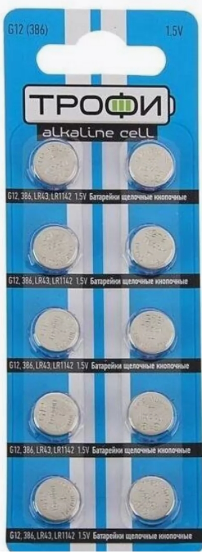Батарейка Трофи G12 LR1142 (386) 10шт