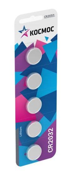 Литиевая батарейка CR2032 5хBL КОСМОС KOC20325BL используется для питания наручных часов, пультов дистанционного управления, светодиодных фонарей, материнской платы на компьютере и другой техники. Изделие эксплуатируется в широком диапазоне температур от -40 °С до +65 °С. Обладает высокой удельной мощностью. Срок хранения – 10 лет.