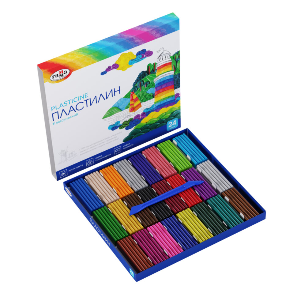 Пластилин Гамма "Классический", 281036, 24 цвета, 480г, со стеком, картонная упаковка