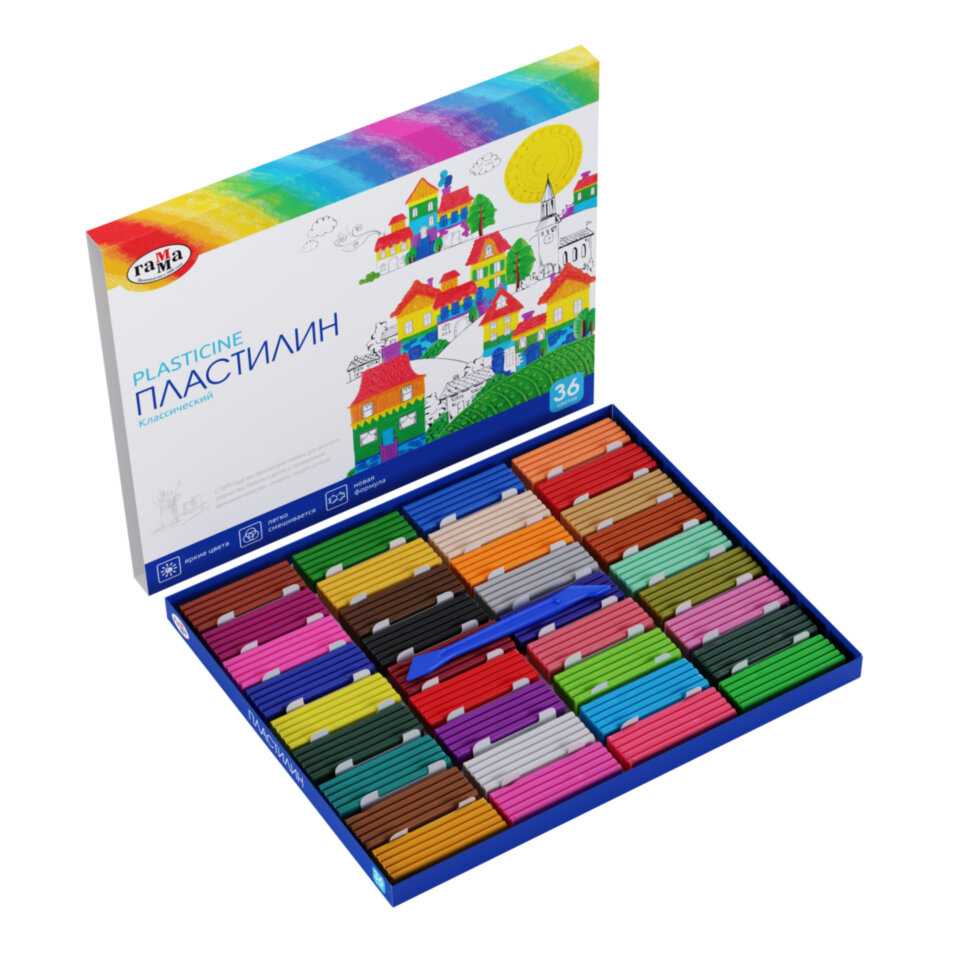 Пластилин Гамма "Классический", 281037, 36 цветов, 720г, со стеком, картонная упаковка