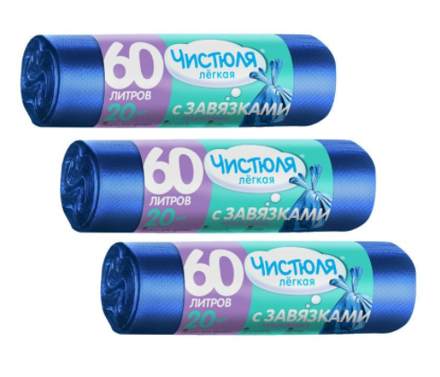 Пакеты для мусора Чистюля Лкгкая с Завязками-ушками 60л, 20 штук
