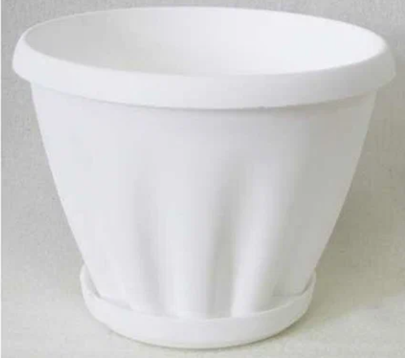 Пластиковый горшок с поддоном классической формы идеально подойдет для выращивания растений домашних условиях.