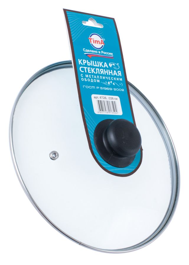 Крышка стеклянная 24см с метал/ободком + ручка, 4724