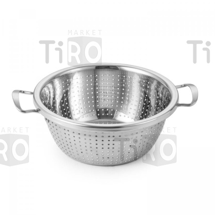 Дуршлаг выполнен из нержавеющей стали, отличается прочностью и долговечностью, не подвергается коррозии и отвечает всем гигиеническим нормам и требованиям. Дуршлаг используется для слива воды с вареных овощей, макарон, риса и т.п., также дуршлаг удобен для промывания мелких ягод, таких как смородина, вишня, клубника, малина и т.д. Дуршлаг металлический оснащен двумя удобными ручками и устойчивым ровным дном. Сито подходит для приготовления домашнего творога и сыра. Такой удобный и практичный аксессуар станет незаменимым помощником на кухне для каждой современной хозяйки. Подходит для мытья в посудомоечной машине. Диаметр 34 см, высота 13.5 см.