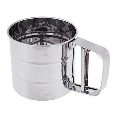 Кружка-сито для просеивания муки с двойным ситовым дном нержавеющая сталь Д10см 500мл 40028