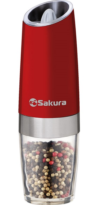 Перцемолка электрическая гравитационная Sakura SA-6643W, тип ААА*6шт, подсветка, белый