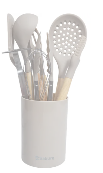 Набор кухонных принадлежностей 10 предметов, силикон, сталь, дерево, серый SA-KW100G