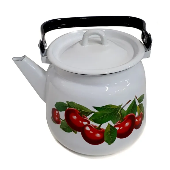 Эмалированный чайник Новокузнецк C2716, 3,5л. белый с декором