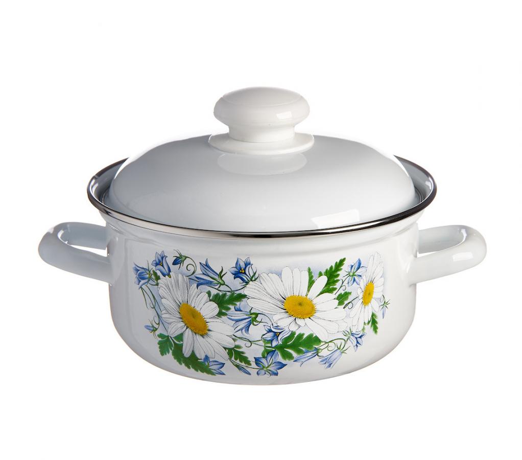 Кастрюля эмалированная 1,5л, Лысьва "Ромашковое поле" сотейник, С-1508АП2/4