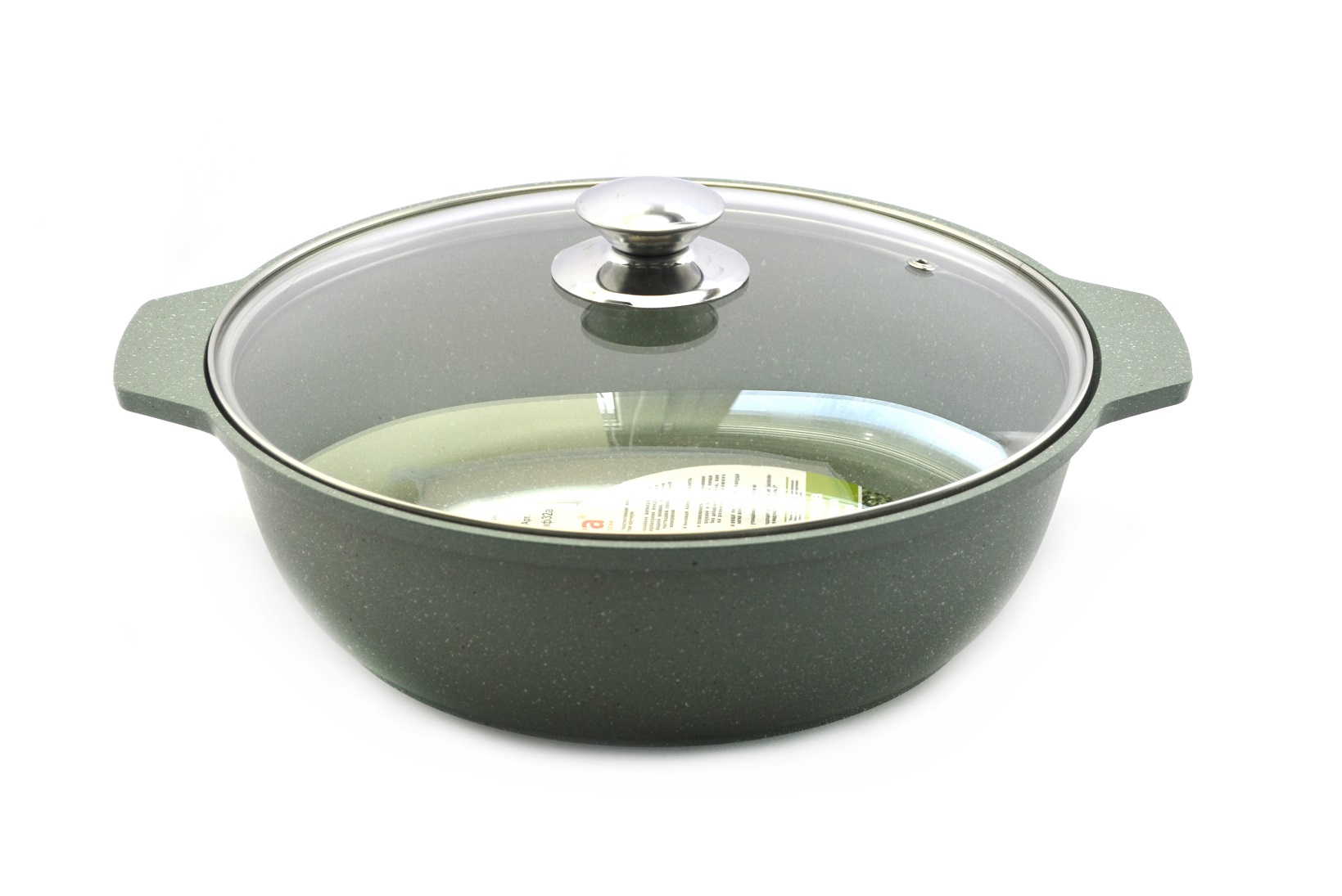 Кастрюля-жаровня Кукмор 3л антипригарное покрытие, стекл крышка салатовый мрамор