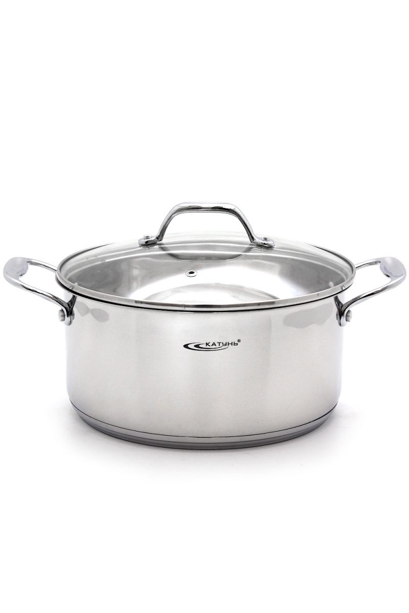 Кастрюля, нержавеющая сталь, 5,2л, толщина 0,5мм, стеклянная крышка, Ника КТ02-D-52