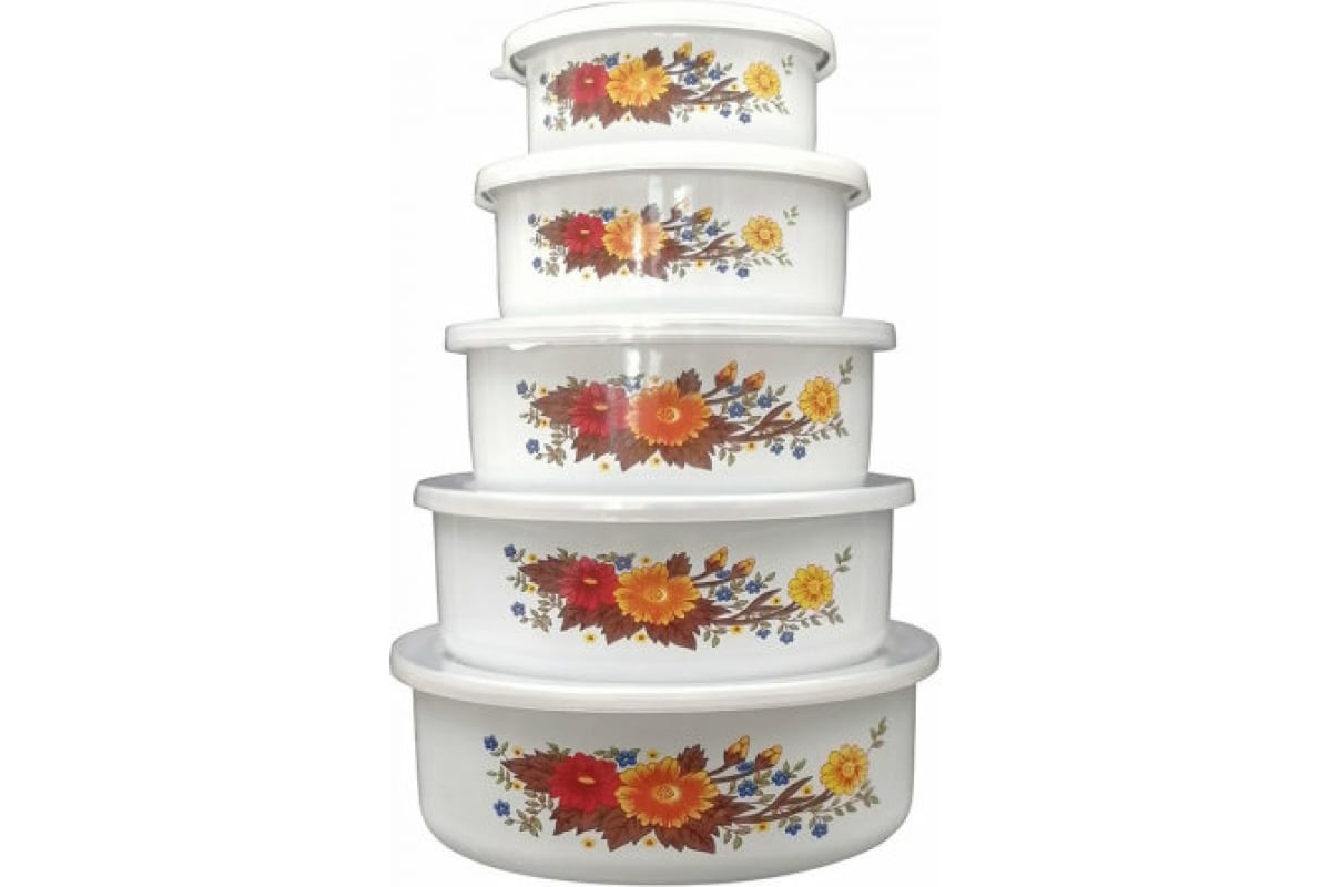 Набор из 5 эмалированных мисок с крышками, FAMILIA, 195/340/600/850/1250 мл