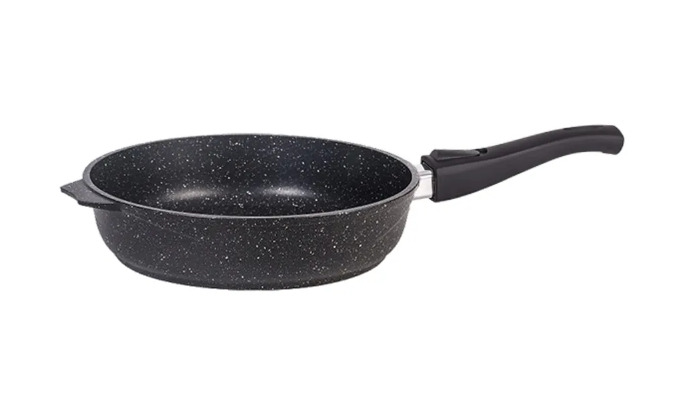 Сковорода оснащена удобной съемной ручкой, не нагревающейся в процессе готовки и обеспечивающей надежный хват. Использование съемной ручки позводяет сделать сковороду компактнее в хранении и при мойке.