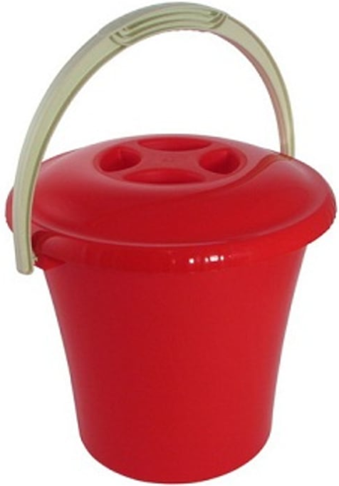 Ведро пластиковое хозяйственное, легкое, крепкое и недорогое. Легко моется и чистится если это необходимо, нетоксично.