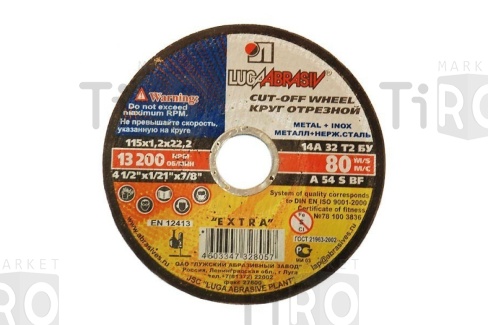Круг отрезной Луга Россия 150-1,4-22 сталь 41 (14А63Т2БУ802)