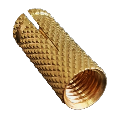 Несмотря на то, что латунь относится к цветным металлам, по цене это сравнительно недорогое изделие, так как размеры его малы. Забивной анкер представляет собой втулку, часть которой разрезана вдоль и образует лепестки. Также внутри, на внешнем крае, имеется резьба, на которую впоследствии можно будет накручивать метрический крепеж. Анкер забивают в отверстие в стене, и в результате механического воздействия металлические лепестки раскрываются, упираясь в стенки «гнезда».
