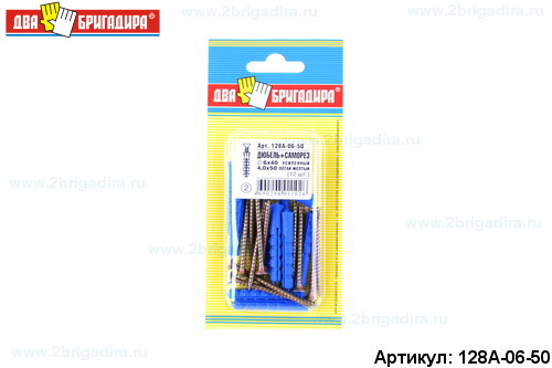Дюбель 128А-06-50 6*40 усиленный+саморез цинк 4,0*50 (12шт.) /24/