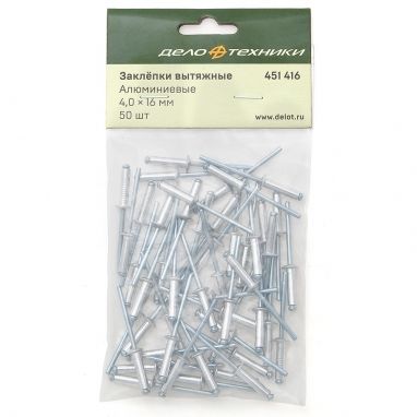Заклепки вытяжные алюминиевые d4,0*6 мм (50 шт в пакете) 451406