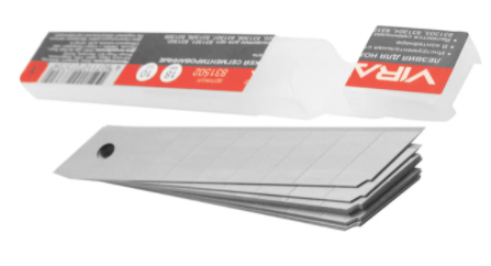 Лезвия для ножей VIRA сегментные 18мм 10шт. Предназначены для разрезания бумаги, картона, пленки, ткани, резины. Каждое лезвие имеет засечки для надлома затупившегося сегмента. Размер: ширина - 18 мм, длина - 100 мм.