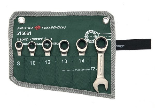 Набор ключей комбинированных, трещоточных, коротких - 6шт (8,10,12,13,14,17мм) Дело Техники 515661