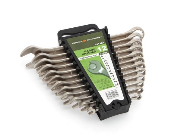 Набор ключей комбинированных - 12 штук (6,8,10,12,13,14,15,16,17,18,19,22) пластик холдер, 511121