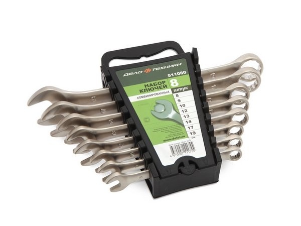 Набор ключей комбинированных - 8 штук (8,9,10,12,13,14,17,19) пластиковый холдер, Дело Техники  511080