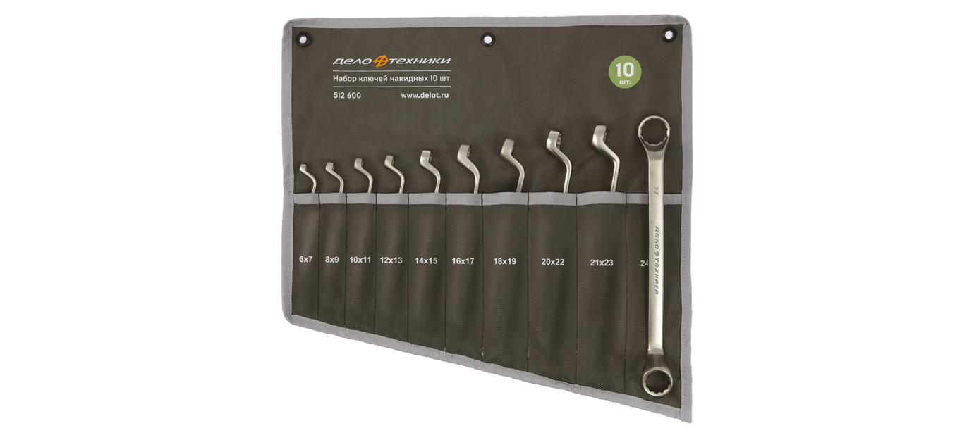 Набор ключей накидных - 10 штук (6х7 - 24х27) сумка, Дело Техники 512600