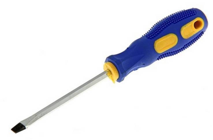 Отвертка двухцветная резин ручка 6 плоская с магнитом (408)