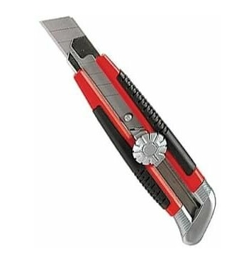 Обрезиненный пластиковый корпус имеет металлическую направляющую и винтовую фиксацию лезвия. Сегментированное лезвие выполнено из стали, его замена происходит через хвостовую часть корпуса.