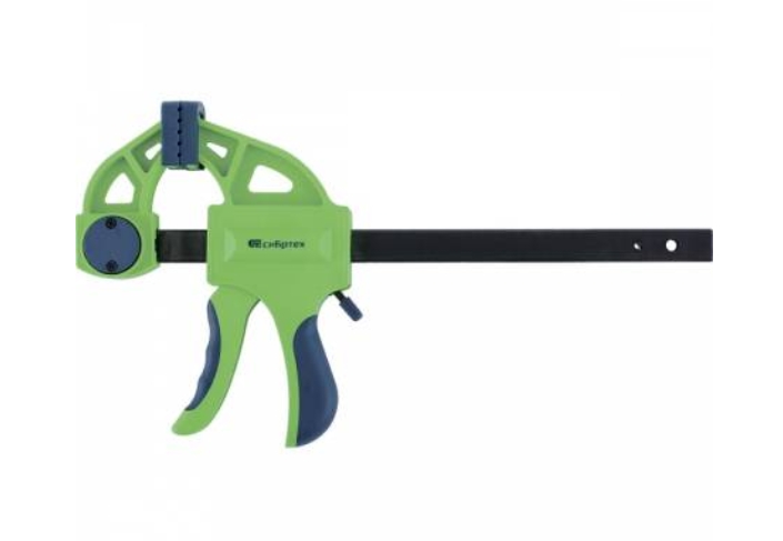 F-образная быстрозажимная струбцина Сибртех 20563 длиной 360 мм, с шириной и глубиной зажима 150 и 70 мм соответственно, в пластиковом корпусе, с фиксатором и двухкомпонентной рукояткой, позволяет зажимать заготовки для их дальнейшей обработки или сборки. Помогает решать множество задач благодаря оптимальной глубине зажима. Пластинчатый механизм пошагово перемещает подвижную губку вдоль направляющей до достижения максимально плотного захвата детали. Фиксатор препятствует движению губки в обратную сторону. Струбцина пригодится в столярной мастерской, а также будет полезна в быту. Преимущества: Надежная конструкция — штанга изготовлена из стали, а корпус — из ударопрочного ABS-пластика. Аккуратная работа — накладки на губках защищают поверхность зажимаемого предмета от повреждений. Дополнительные возможности — опорную губку можно переставить на другой конец штанги, превратив струбцину в распорный инструмент. Комфортная работа — эргономичные двухкомпонентные рукоятки удобно ложатся в руку.