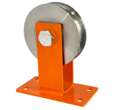 Такелажный окрашенный блок 80 мм имеет плоскую площадку крепления с четырьмя технологическими отверстиями и ролик, расположенный на опорной оси с встроенным подшипником для плавного вращения. Устройство применяется для подъема и опускания грузов, а также увеличения грузоподъемности полиспаста.