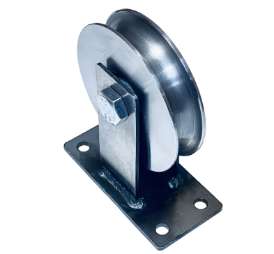Такелажный блок 90 мм имеет плоскую площадку крепления с четырьмя технологическими отверстиями и ролик, расположенный на опорной оси с встроенным подшипником для плавного вращения. Устройство применяется для подъема и опускания грузов, а также увеличения грузоподъемности полиспаста.