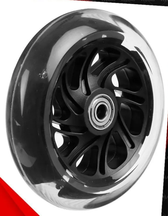 Колесо для детского самоката, 120мм, с подшипниками ABEC 7, переднее, светящееся, пластик, черное.