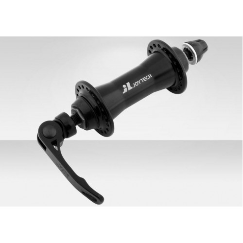 Втулка передняя 751DSE Joytech, MTB, на 32 спицы, с эксцентриковым зажимом RLCA-F, двойное резиновое уплотнение, O.L.D. 100 мм, диаметр фланцев по отверстиям для спиц 38 мм, расстояние между фланцами 72 мм, ось 9х108 мм, алюминиевый корпус, чёрная, 153 г.