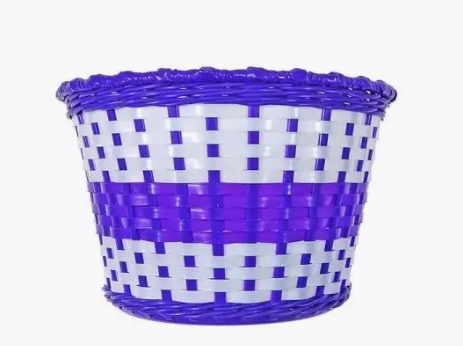 Корзина TRIX для детского велосипеда 12"-16", крепление на руль, 235х165х155мм, пластиковая, плетёная, бело-фиолетовая.