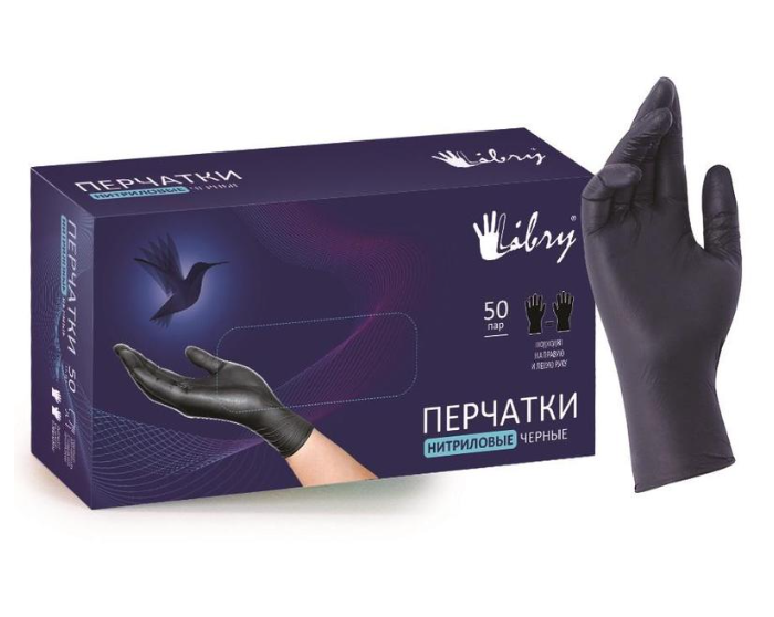 Перчатки нитриловые Libry KN002ВL текстурированные на пальцах, размер S, черные