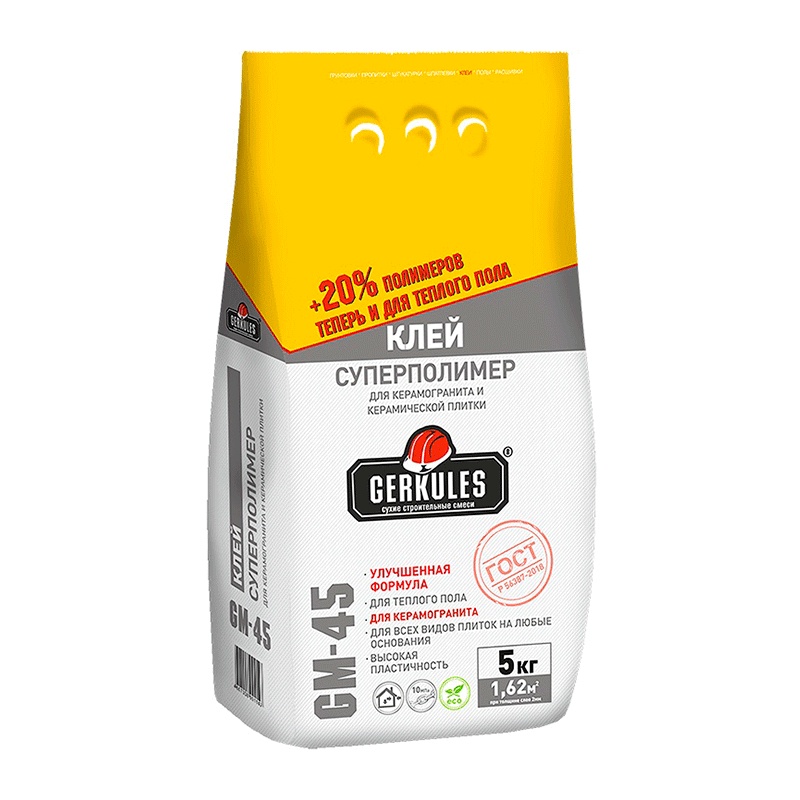 Клей для кафеля Геркулес GM-45 Суперполимер 5кг