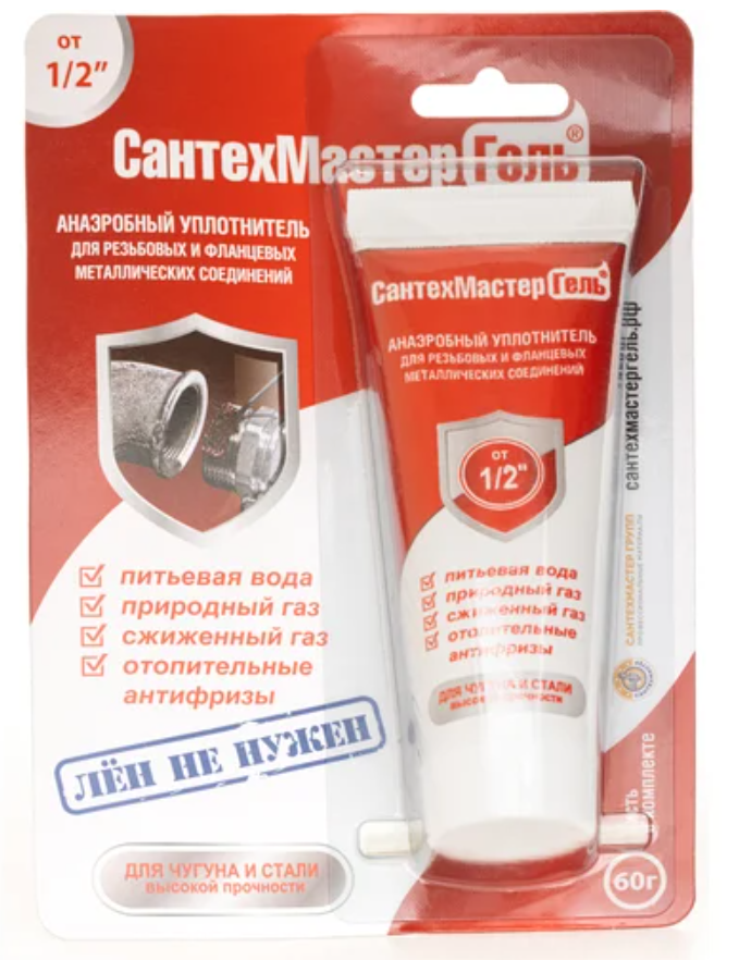 Этот гель отлично подходит для сверхпрочной фиксации и герметизации резьбы и фитингов в трубопроводах, собранных с использованием черных металлов. Применяется для соединений диаметром от 1,5"