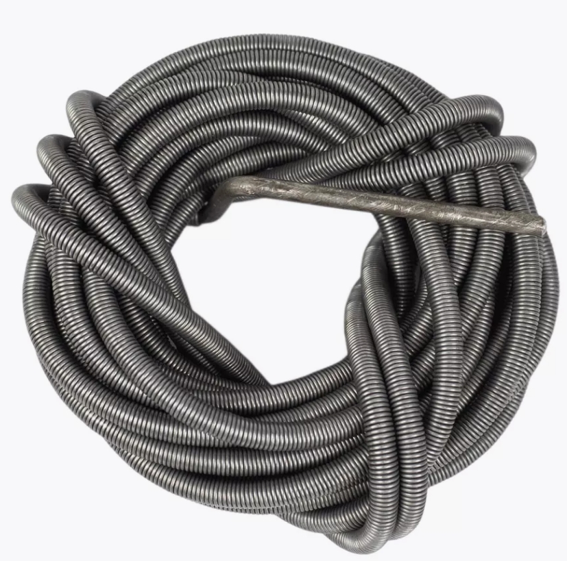 Трос пружинный для прочистки сантехнических и канализационных труб. Этот гибкий прочистной тросик выполнен из качественной нержавеющей стали. Он применяется для пробивки и устранения засоров и отложений в трубопроводах. Трос сантехнический используют для чистки сточных сливов и водостоков, а также дымоходов, вентиляционных каналов и шахт. Может применяться трос для чистки труб в качестве гибкой щетки в сочетании со стальной проволокой или спиральной пружиной. Данный прочистной трос можно использовать в сочетании с различными самодельными насадками в виде ершика или захвата.