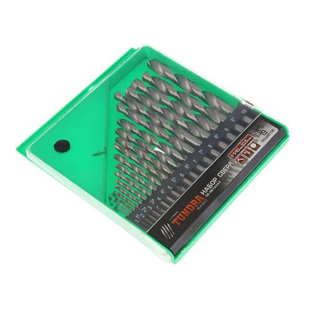 Набор сверл по металлу Tundra basic 695 сталь HSS, 19 предметов, 1-10 мм. через 0,5 мм