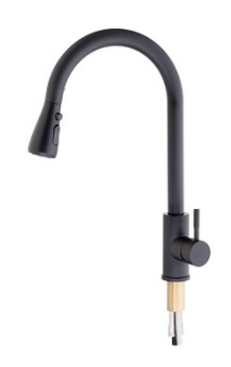 Смеситель для кухни Sanday, 801-07, картридж 35мм, вытяжная лейка, черный