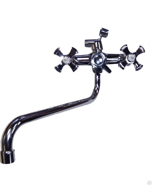 Смеситель для ванны, маховик-крест, керамика, длинный нос 25см, D-Lin D146809
