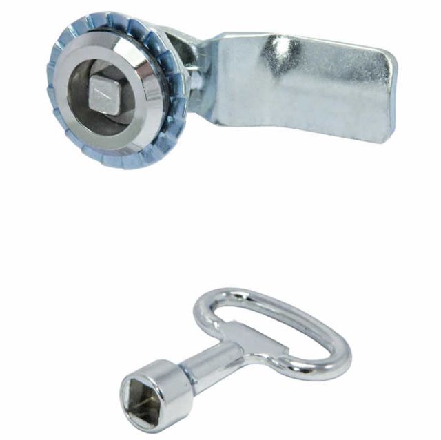 Замок для щитков 705-MS с мастер системой и цельнометаллическим ключом, форма ключа четырехгранник (четырехугольник). Гайка усиленная, ребристая. Резьба крупная Прокладка резиновая. Цвет блестящий хром, никель. Широко применяется в электротехнической продукции, для щитков. Герметичные Водонепроницаемые замки. Все ключи подходят ко всем замкам, что широко применяется для установки в Электрощитовом оборудование, использование замков почтовых 705-7 значительно облегчают работу обслуживающих компаний, и позволяют не иметь при себе лишние связки ключей, т.к. все замки данной модификации можно будет открыть одним Master ключом. Фиксация поворота. Изгиб ригеля на 7 мм позволяет увеличить глубину замка до 25 мм. В комплекте 1 ключ.