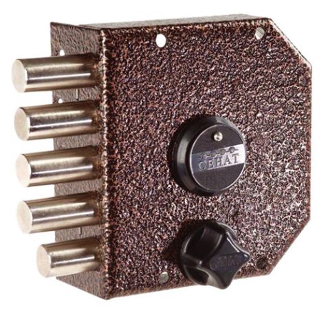 Замок накладной сувальдный с задвижкой. Предназначен для установки на металлические двери. Замок имеет засов из четырех цилиндрических ригелей диаметром 18 мм, с максимальным вылетом 40 мм, и задвижку диаметром 18 мм с вылетом 30 мм. Удаление ключевого отверстия - 64 мм. Количество полуоборотов ключа - 4. Габариты замка - 135х146х32,5 мм. При закрытом на задвижку замке использование ключей с наружной стороны невозможно. Защита от вскрытия замка отмычкой, защита от высверливания стойки ригеля и защита от вскрытия методом проворота.